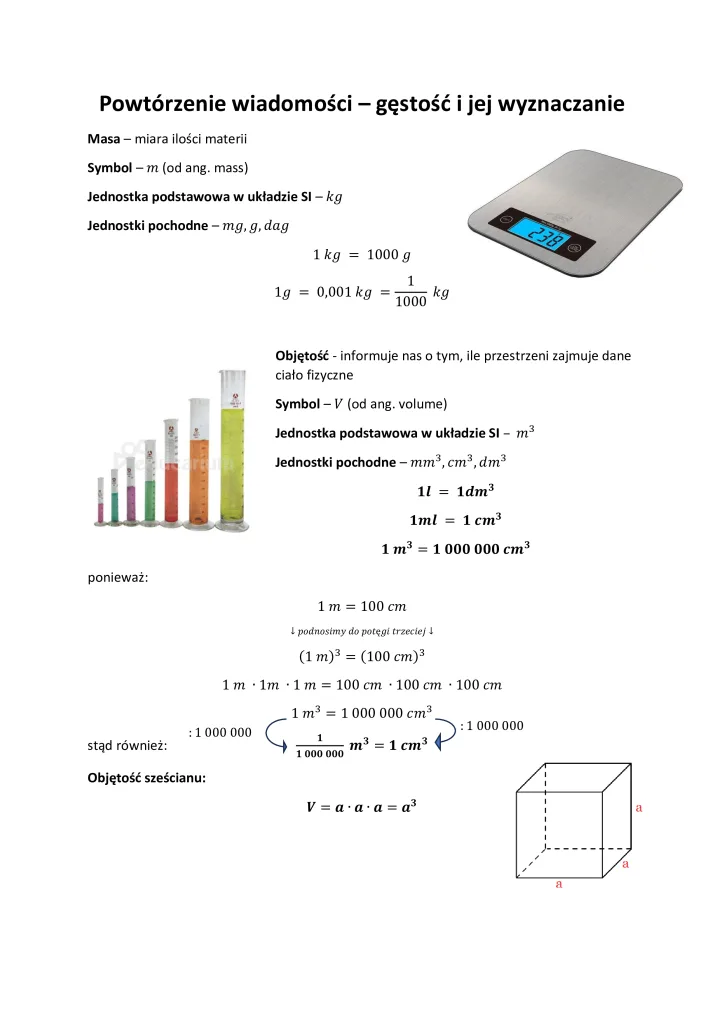 W tym poście znajdziesz powtórzenie wiadomości z tematów Gęstość i Metody wyznaczania gęstości 😉