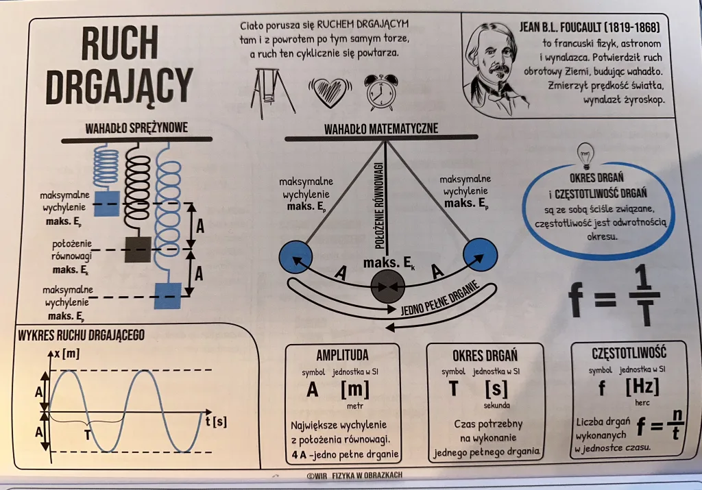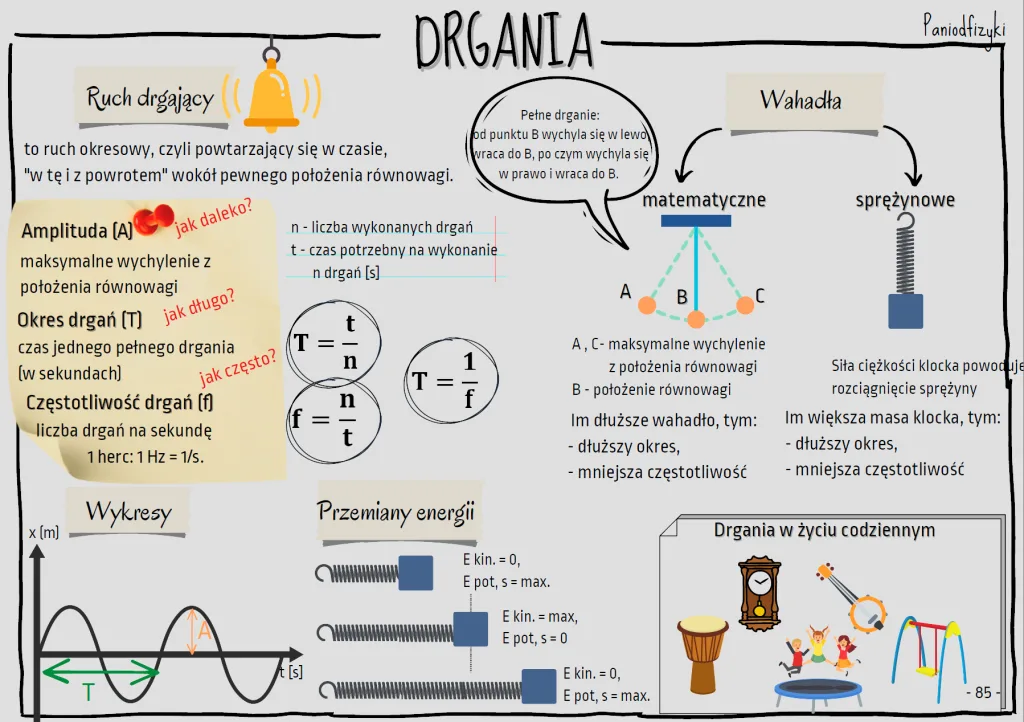 W tym poście znajdziesz notatki do kartkówki z tematów – Ruch drgający; Wykresy ruchu drgającego; Przemiany energii w ruchu drgającym 🤗